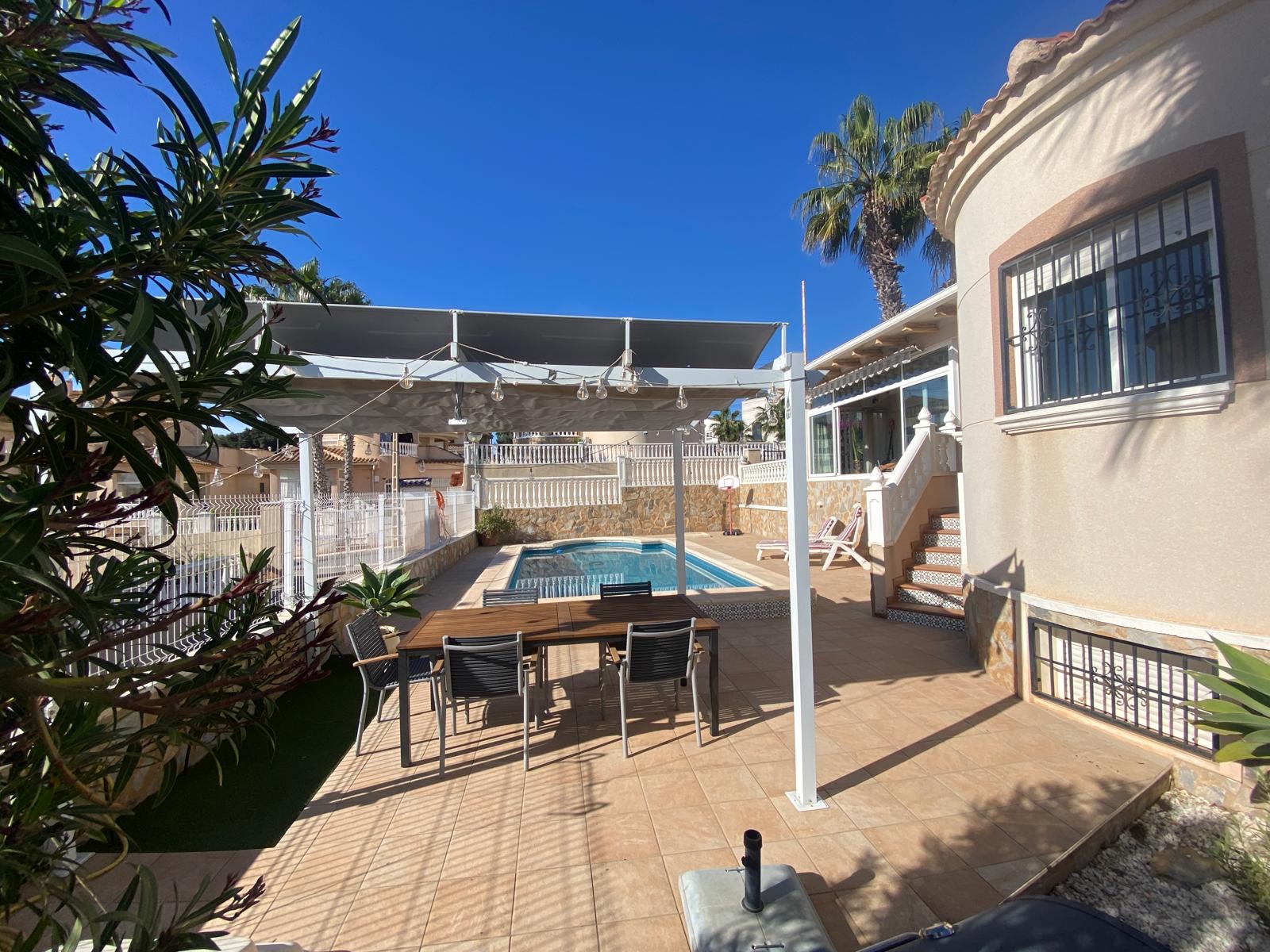 – Véranda meublée dans laquelle vous pourrez prendre vos repas tout en gardant un œil sur la piscine